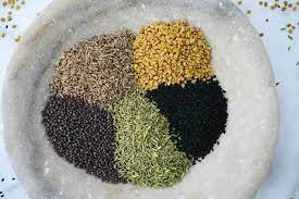 Mustard oil - 2 tbsp Cumin - 1 tsp Panchphoron masala - 1½ tsp Whole dry red chili - 1 Green chili - 2 chopped Garlic - 1 tbsp Finely chopped Onion - 1 chopped Salt - As per taste Turmeric powder - 1/4 tsp Dry mango powder - 1/2 tsp Red chili powder - 1/2 tsp Garam masala - 1½ tsp Panchphoron masala - Cumin seeds - 1 tbsp Fennel seeds - 1 tbsp Kalonji - 12 tbsp, fenugreek seeds - ½ tsp, mustard seeds - 12 tsp.